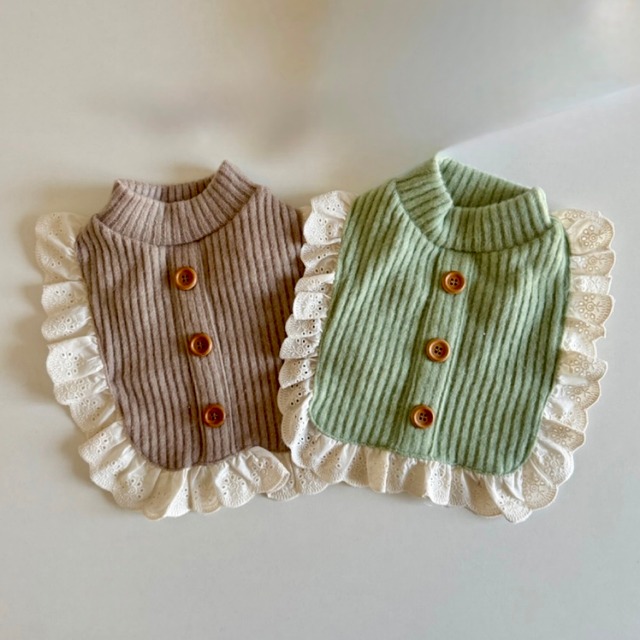 【 予約 】milktea frill vest knit 2colors ꕤ.。 韓国犬服