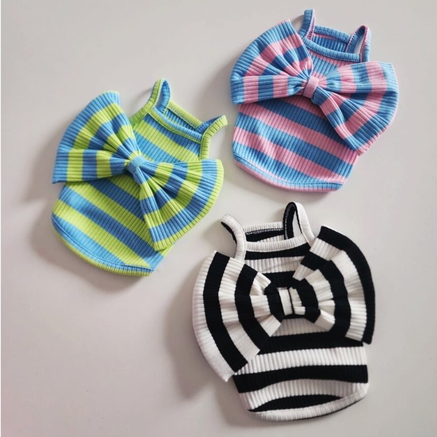 【 予約 】ribbon stripe camisole 2colors ꕤ.。 韓国犬服