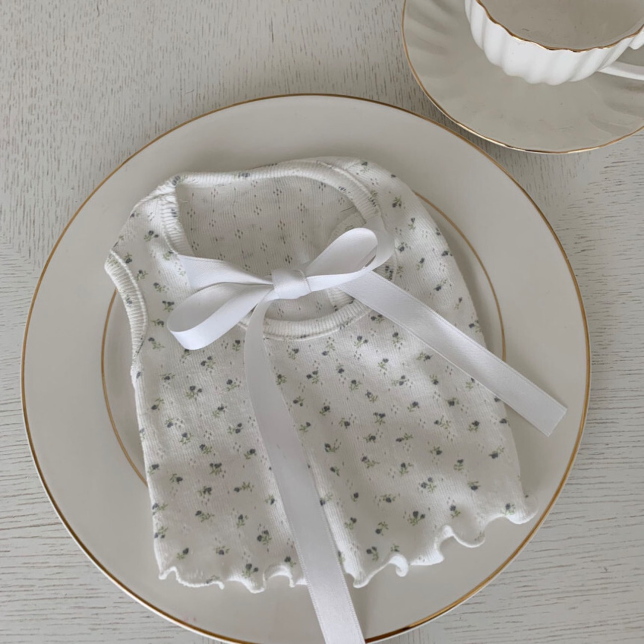 清楚でかわいい小花柄リボンteeです.*・゚