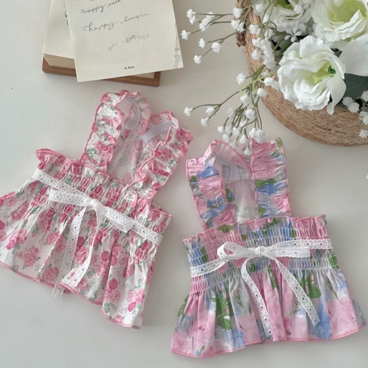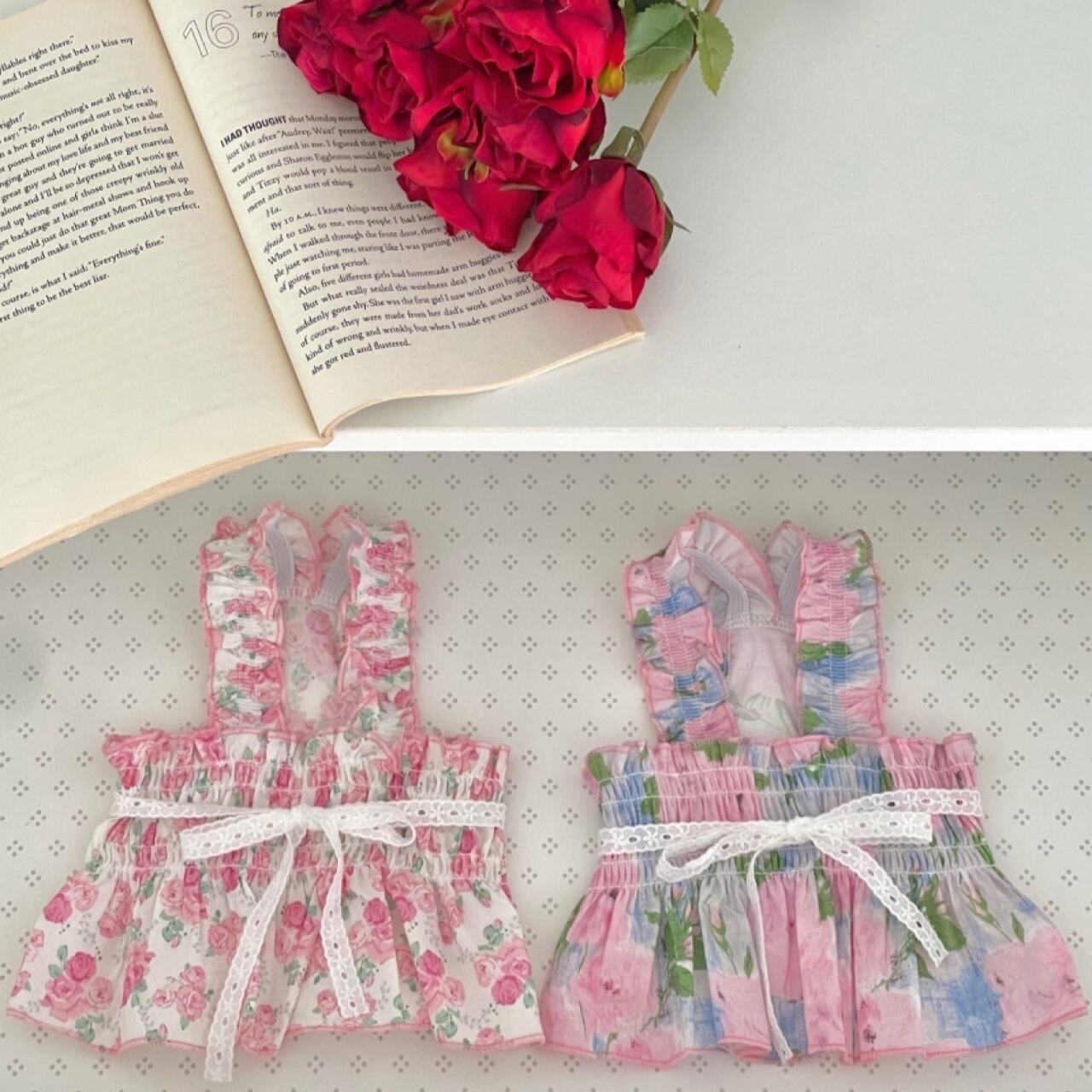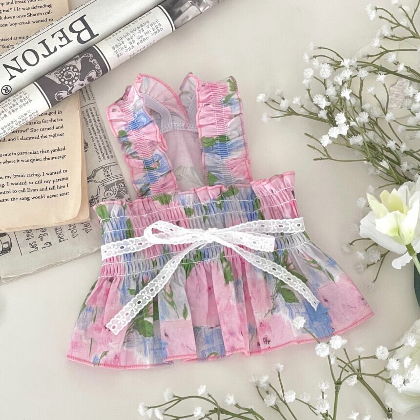 【 予約 】rose onepiece 2colors ꕤ.。 韓国犬服