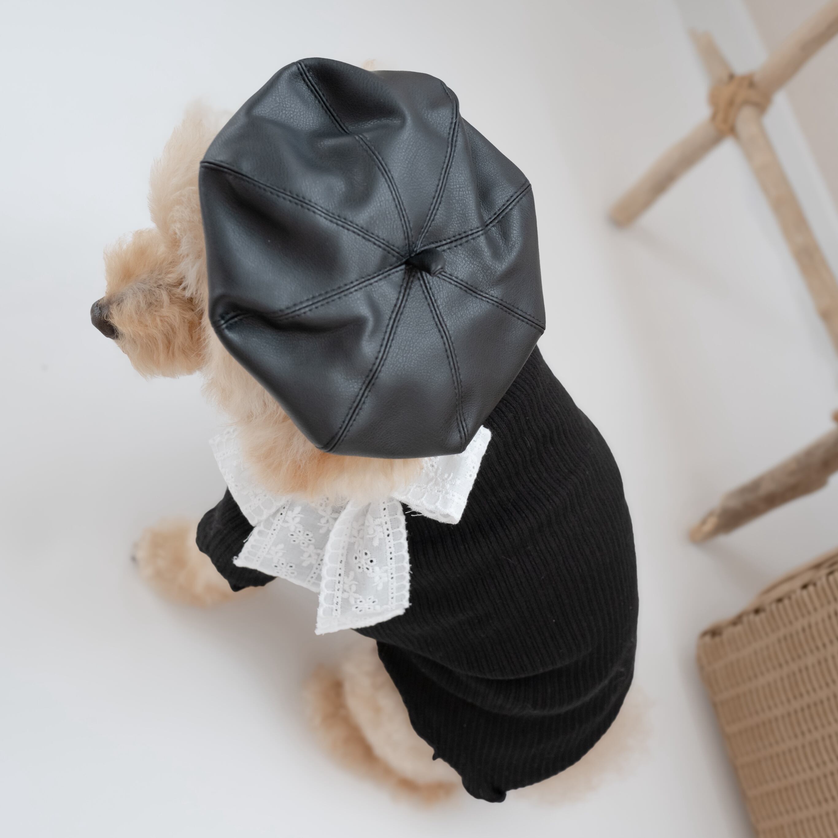 【 予約 】leather beret 2size ꕤ.。 韓国犬服