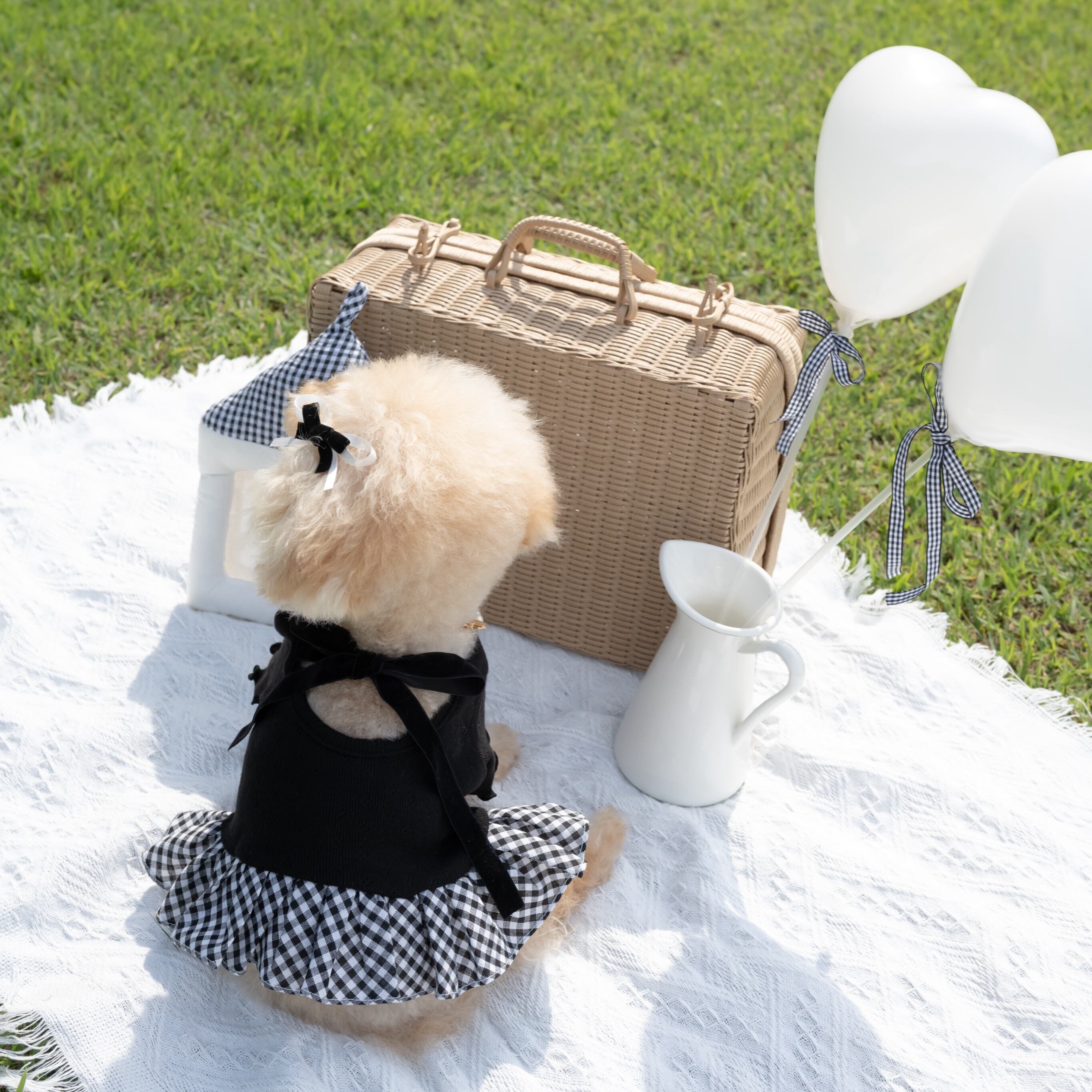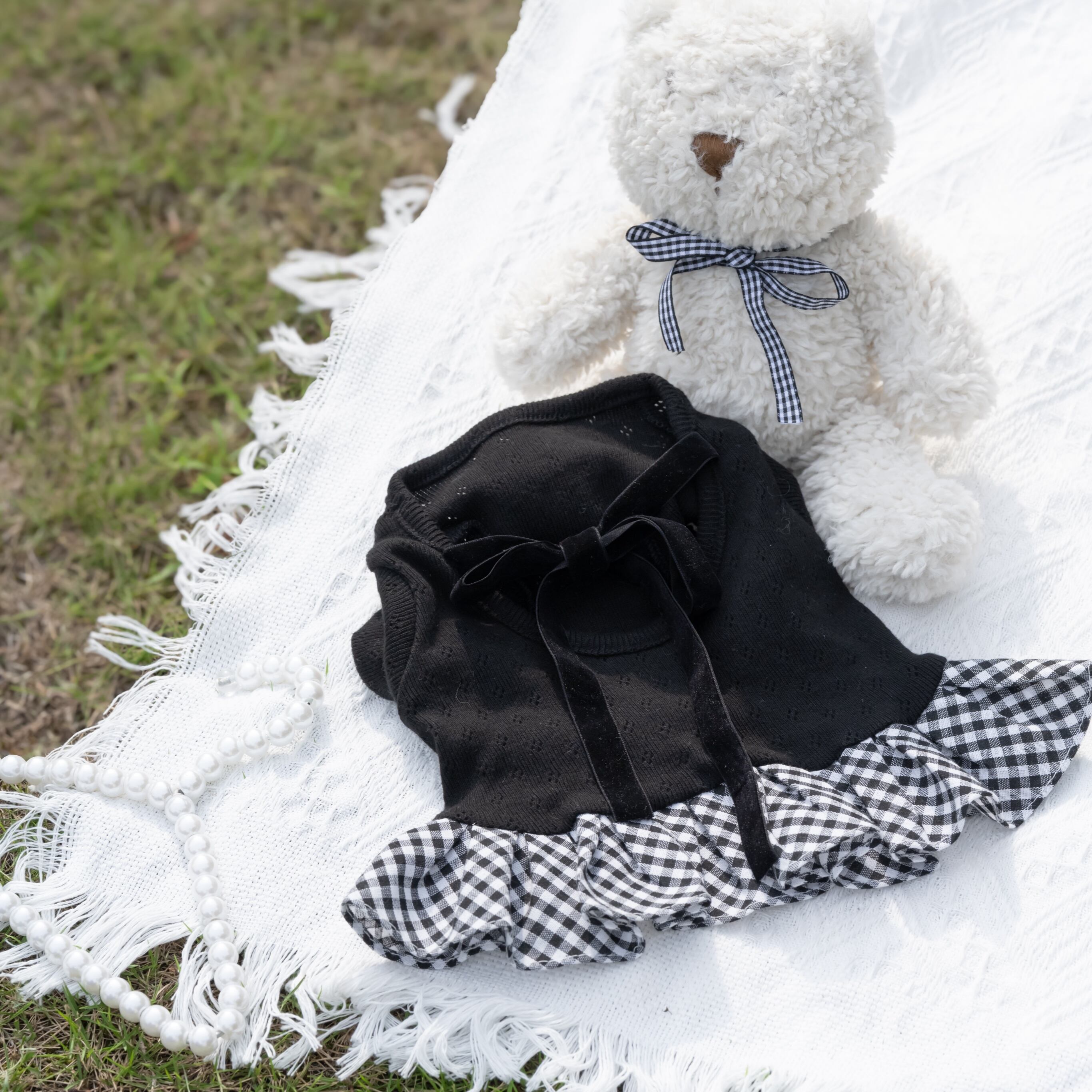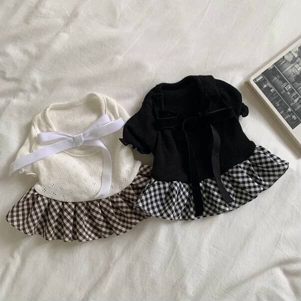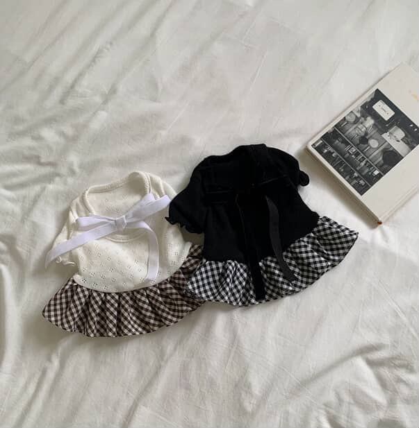 【 予約】balletcore velvet check onepiece 2colors ꕤ.。 韓国犬服