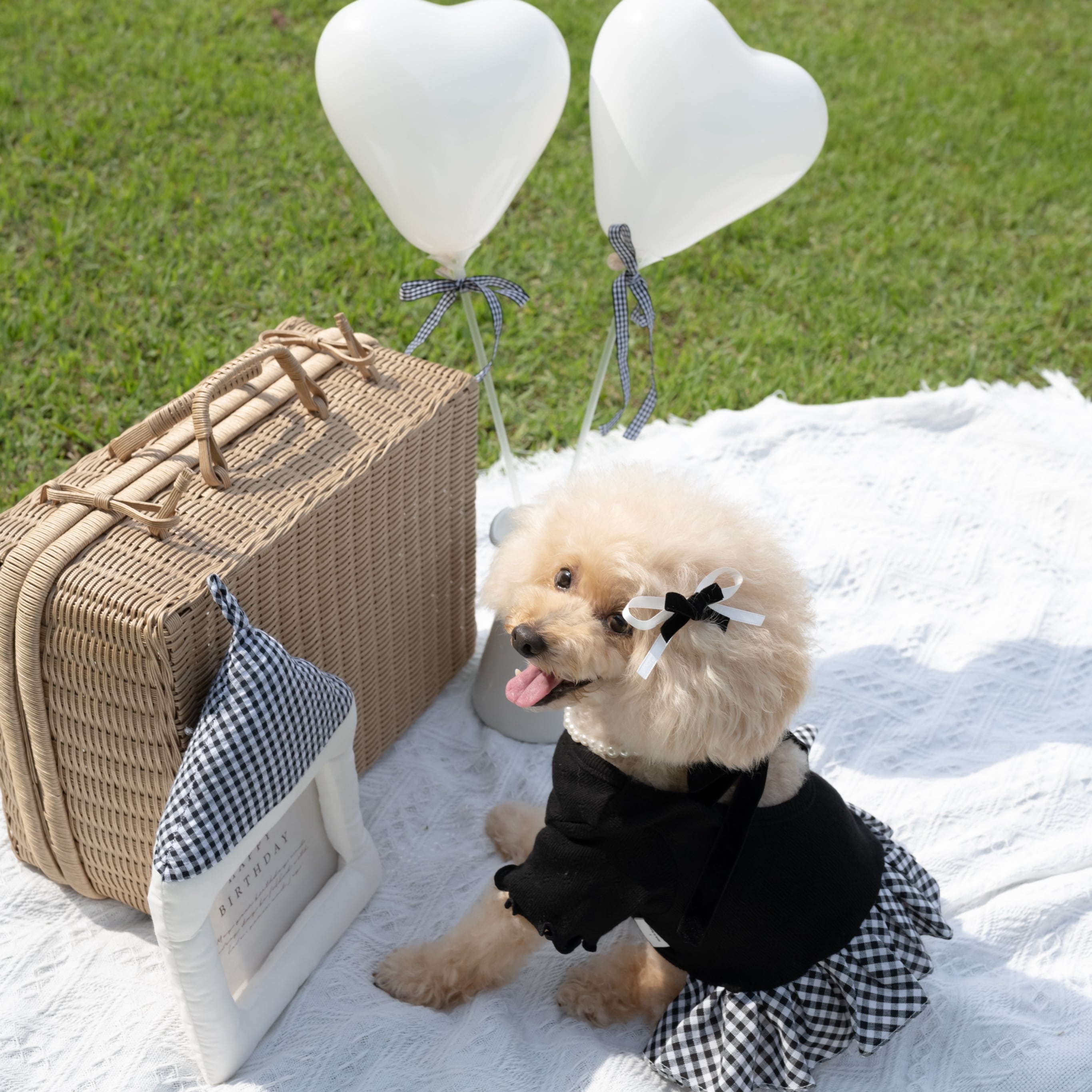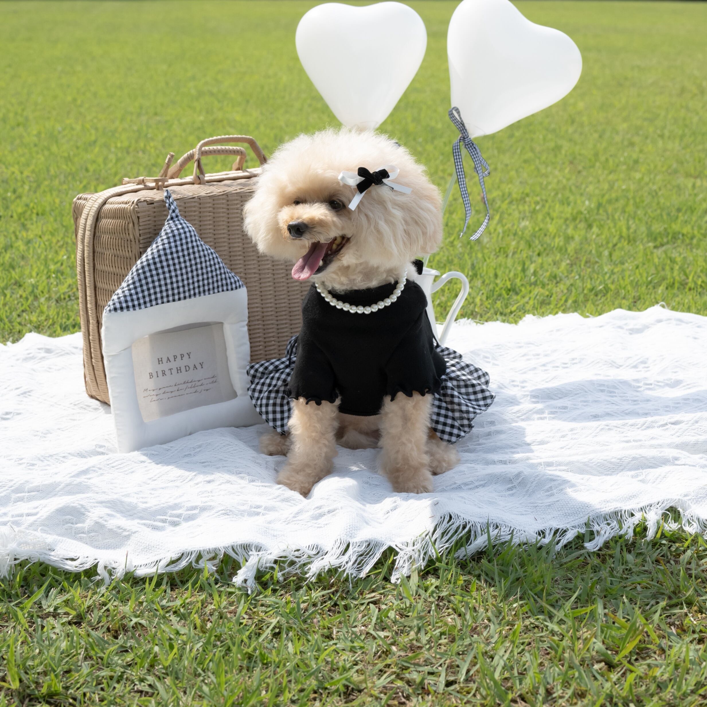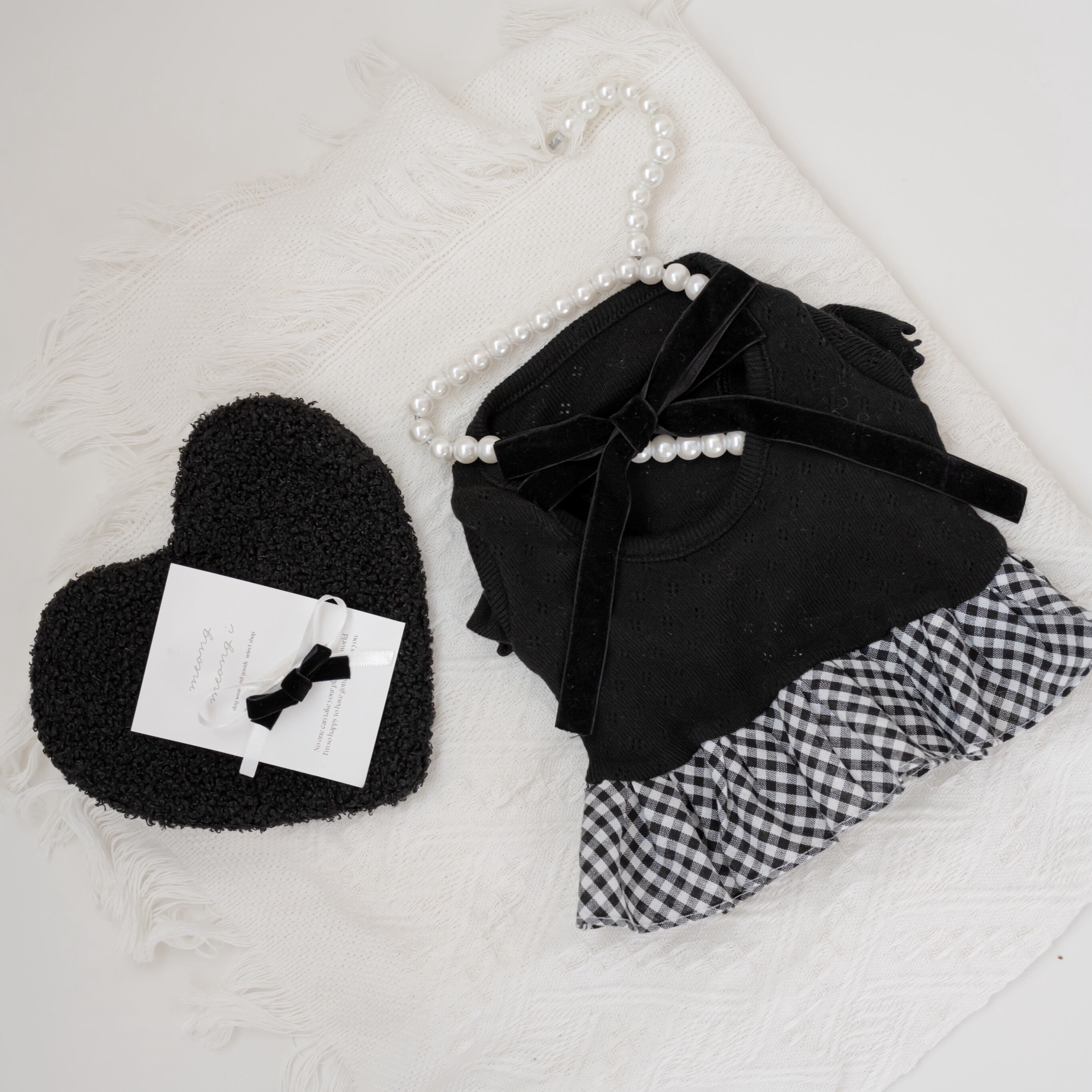 【 予約】balletcore velvet check onepiece 2colors ꕤ.。 韓国犬服