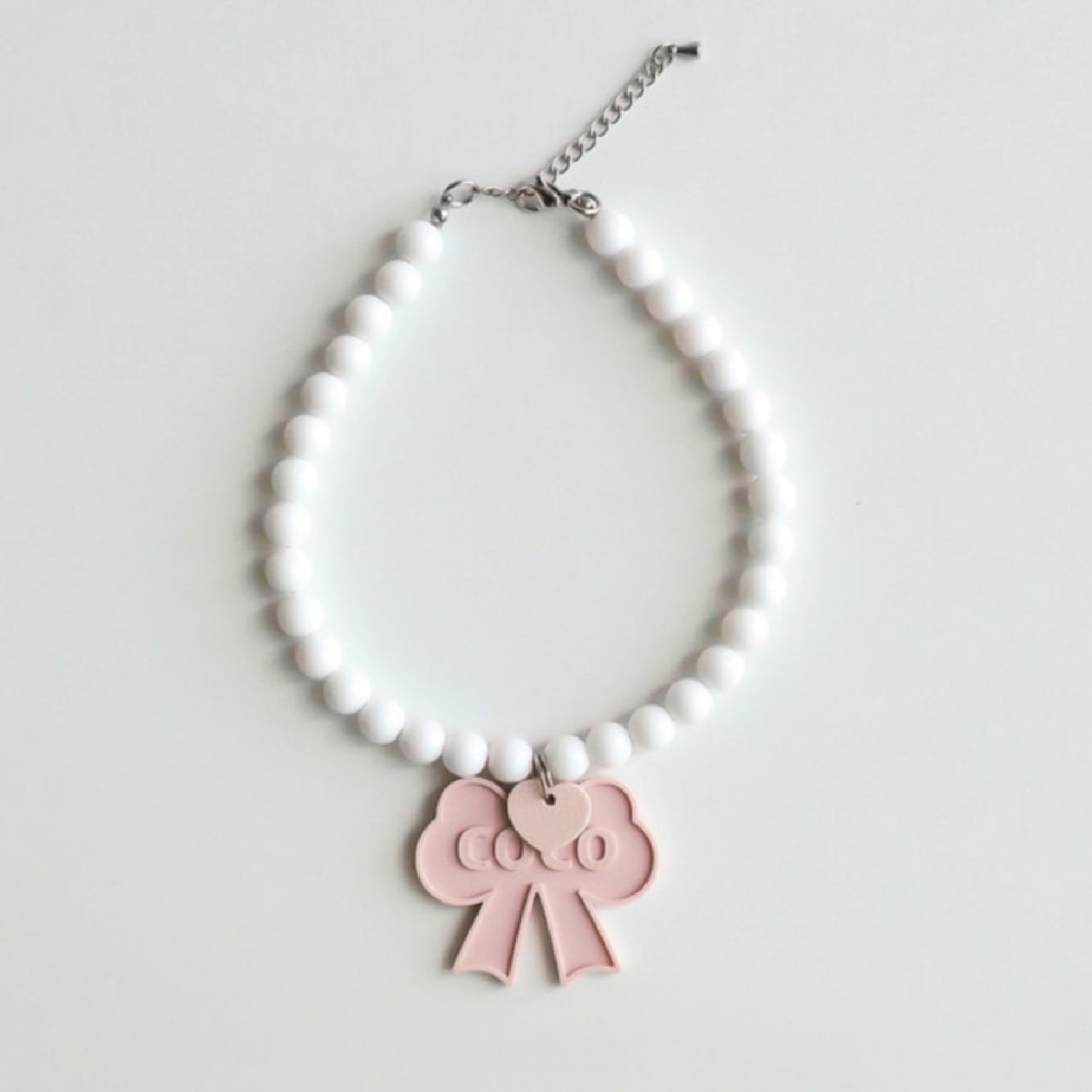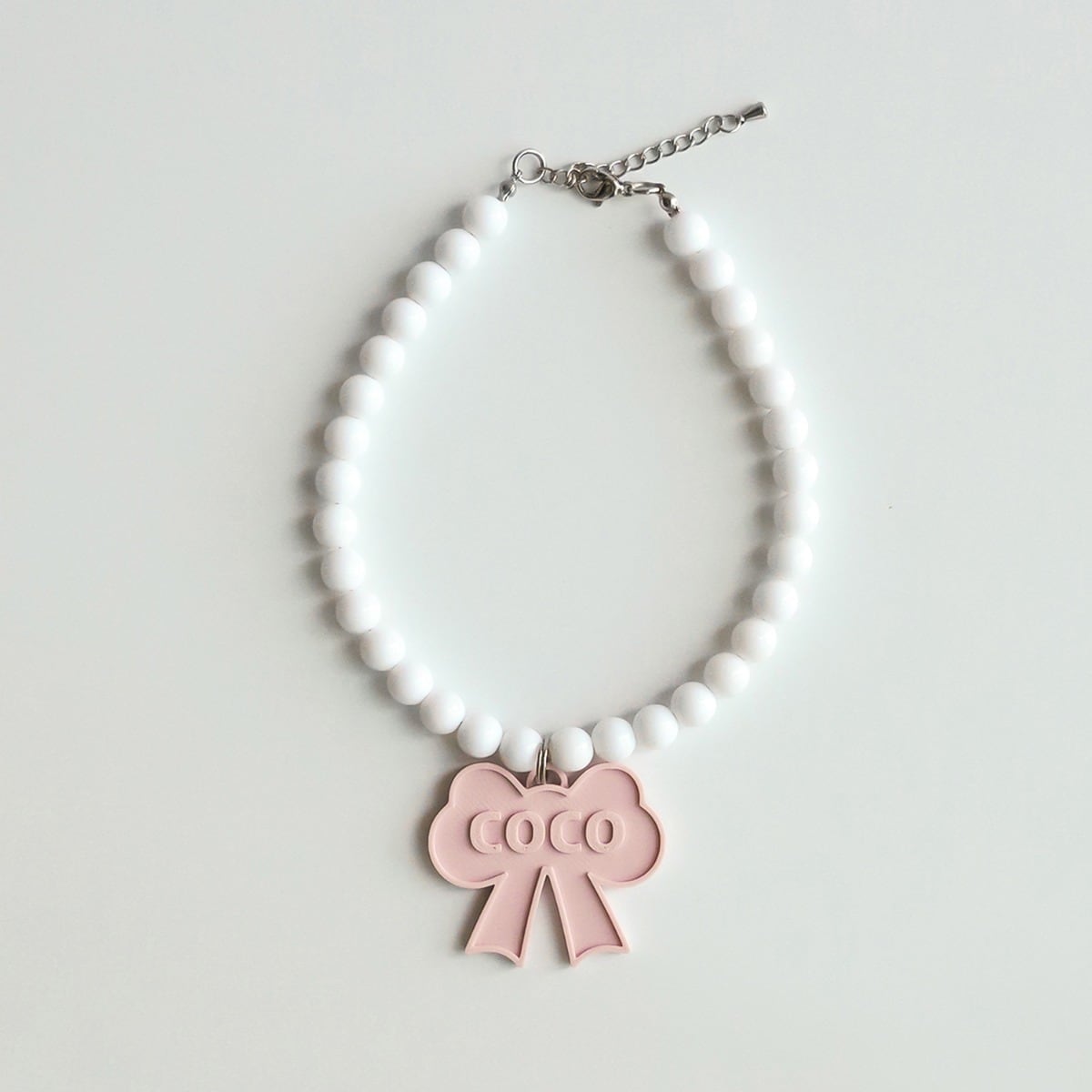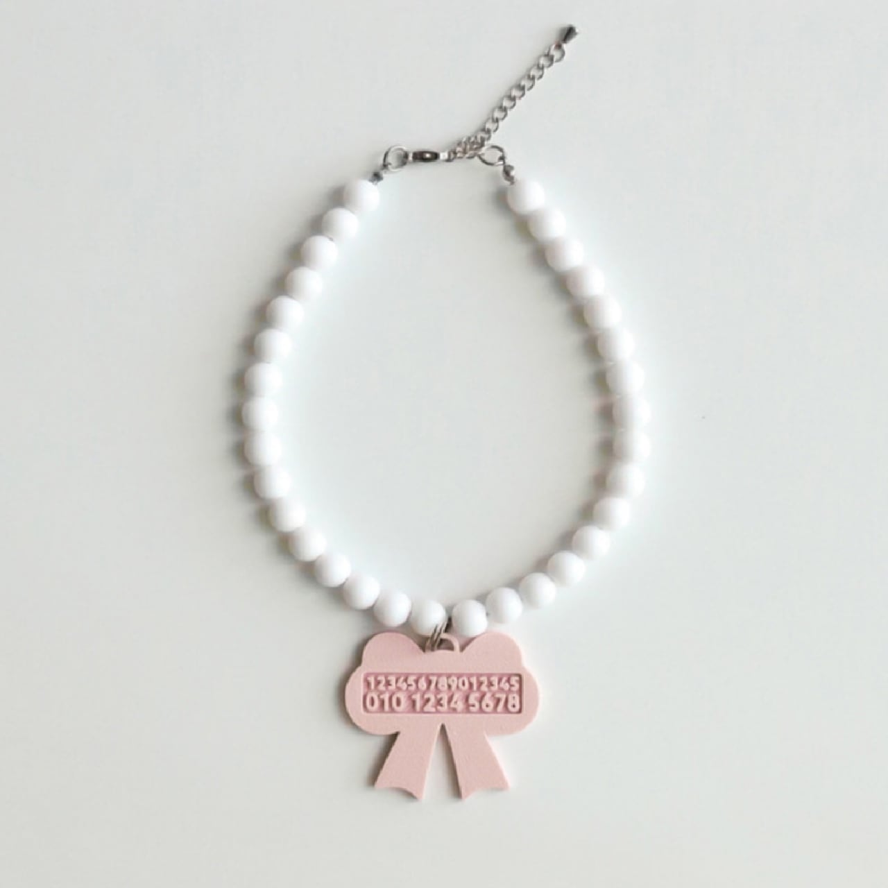 【 限定予約 】ribbon nametag beadsnecklace 6colors ꕤ.。 ネームタグ 韓国犬服