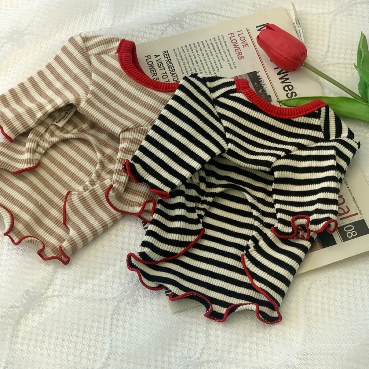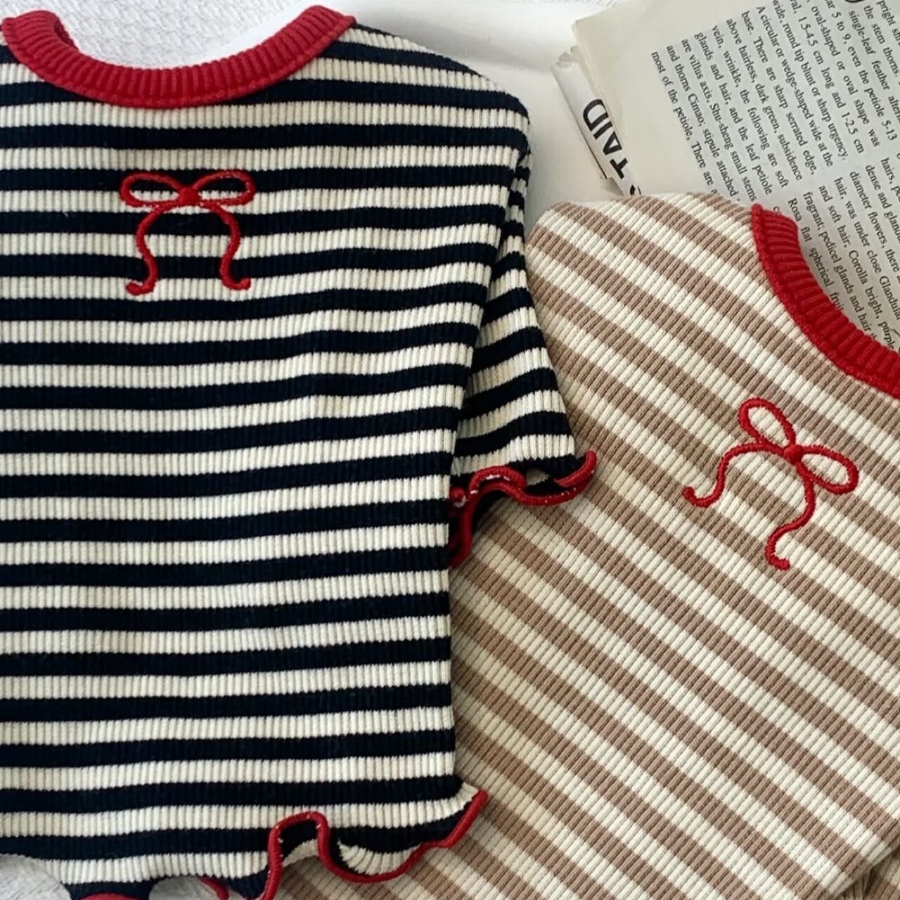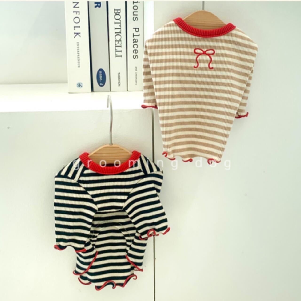 【 予約 】redribbon stripe tee 2colors ꕤ.。 韓国犬服