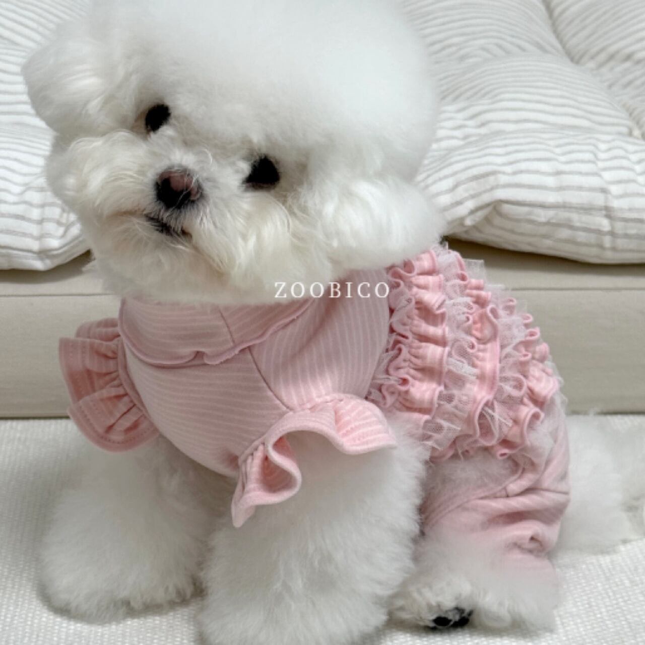【 予約 】cutie frill allinone 2colors ꕤ.。 韓国犬服