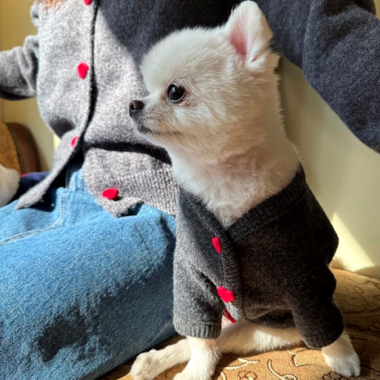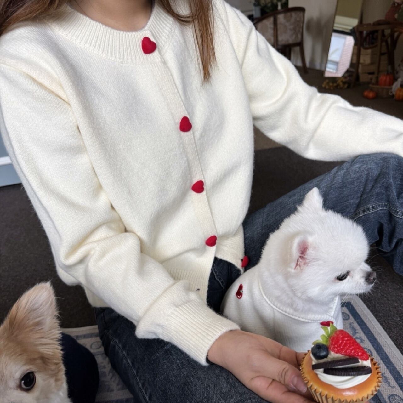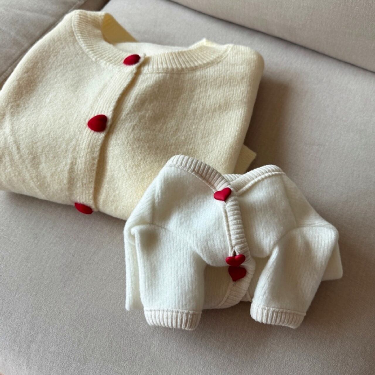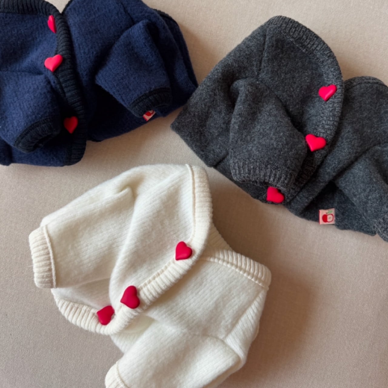 【 即納 】heart pompom cardigan 3colors ꕤ.。 韓国犬服 couplelook