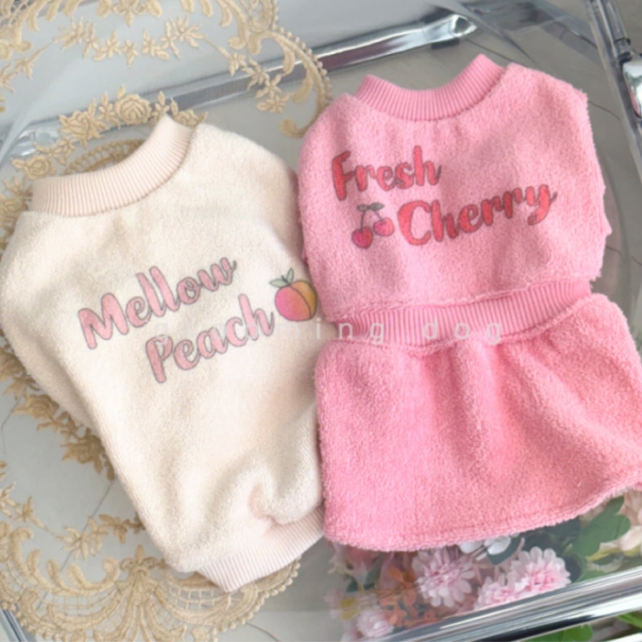【 予約 】vintageterry peachcherry onepiece ꕤ.。 韓国犬服