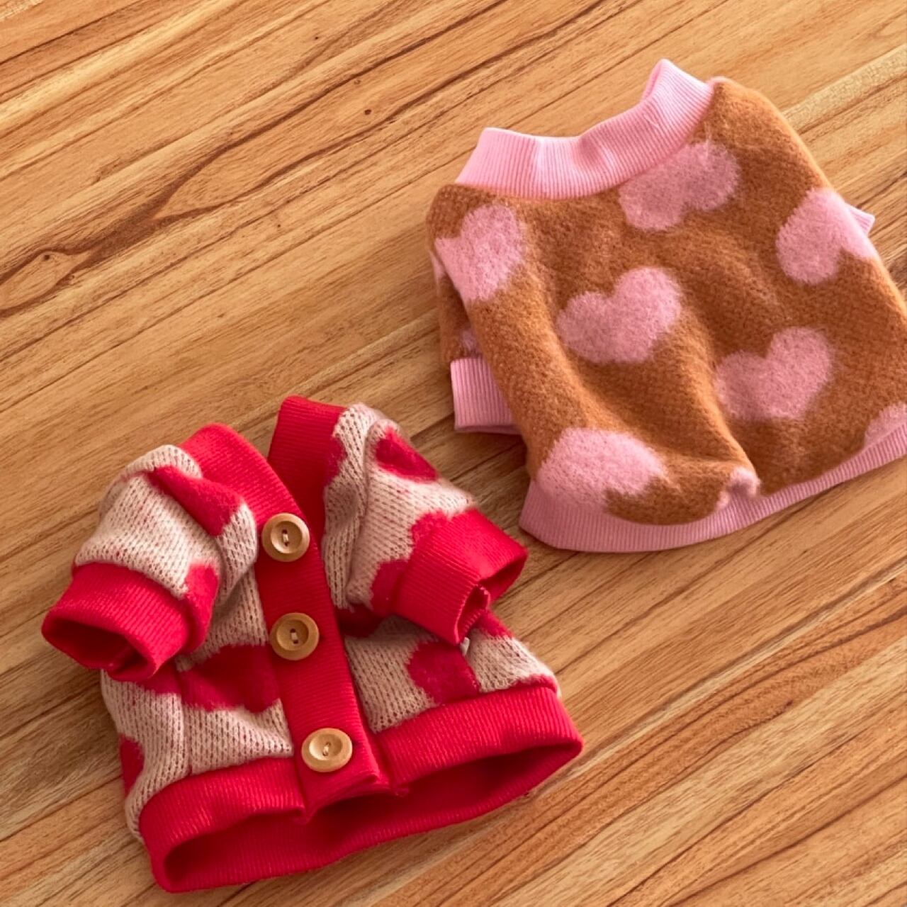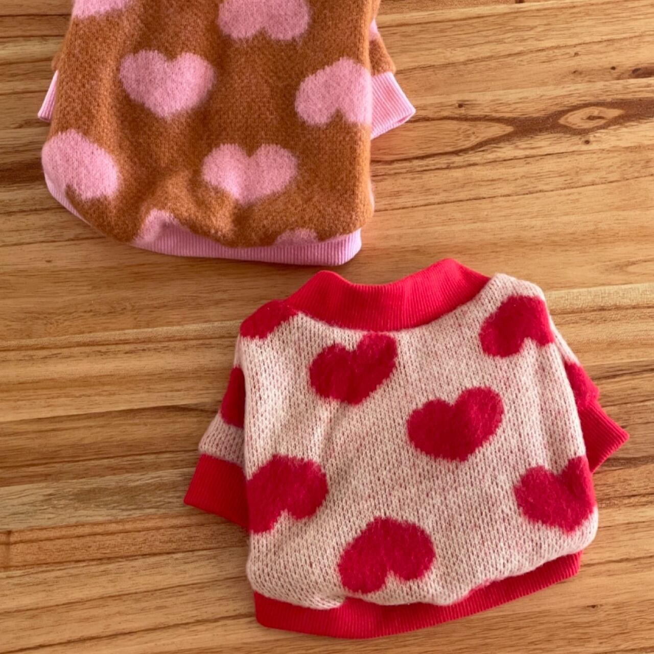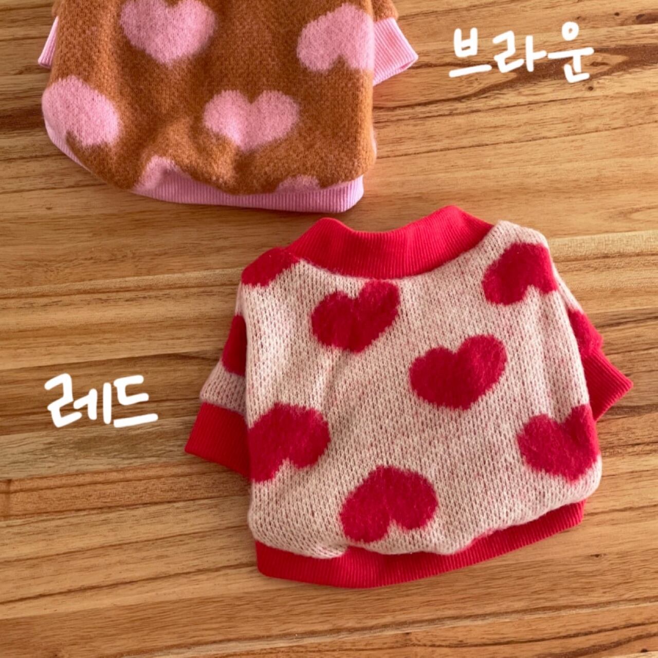 【 即納 】lovely heart knitcardigan 2colors ꕤ.。 韓国犬服