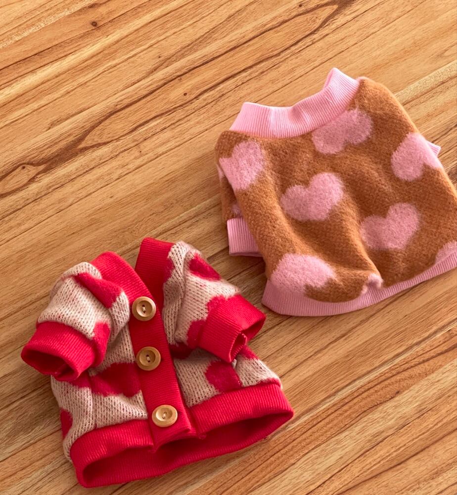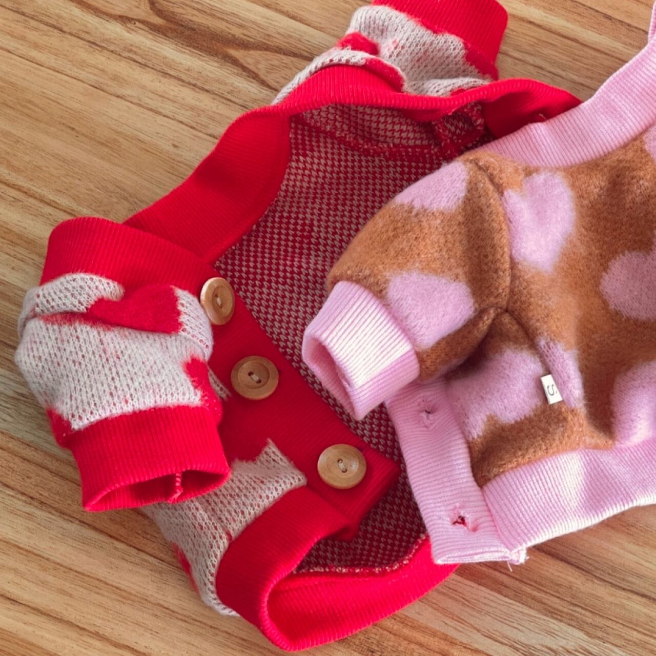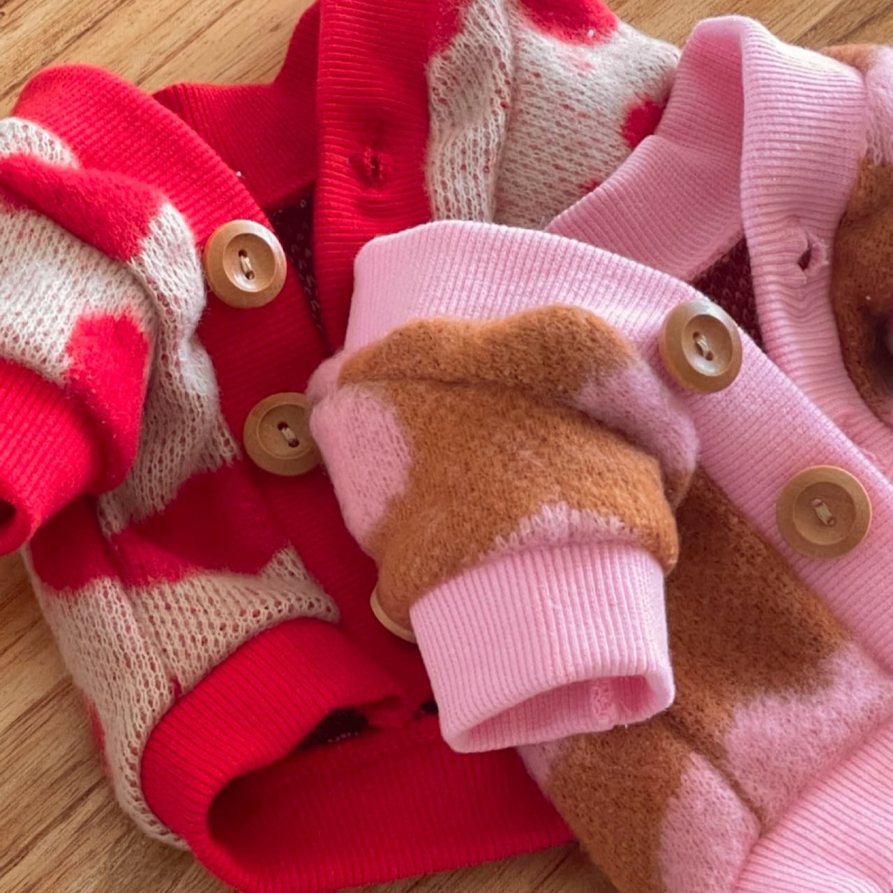 【 即納 】lovely heart knitcardigan 2colors ꕤ.。 韓国犬服
