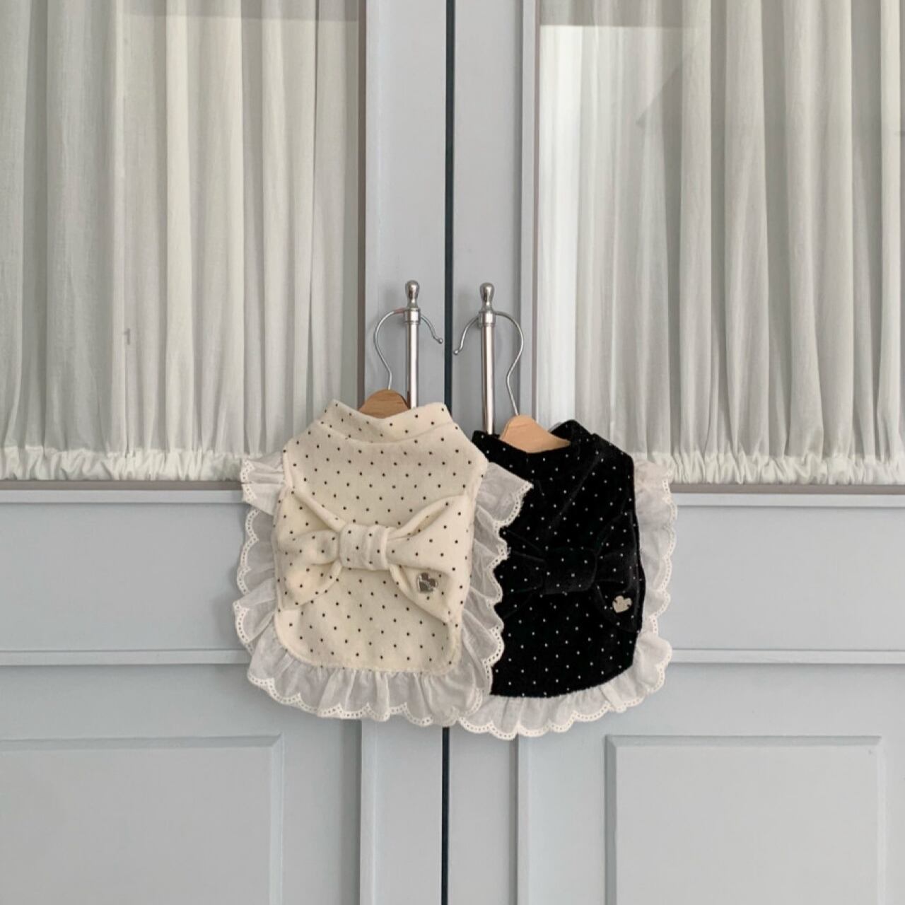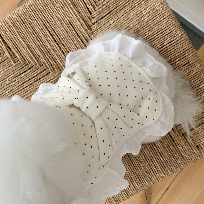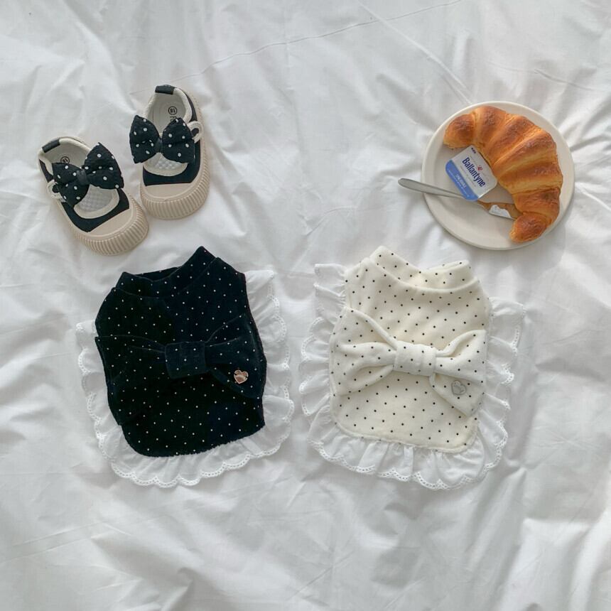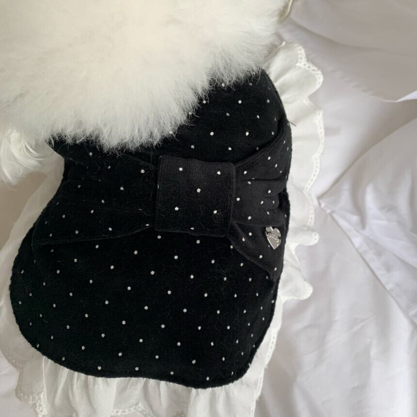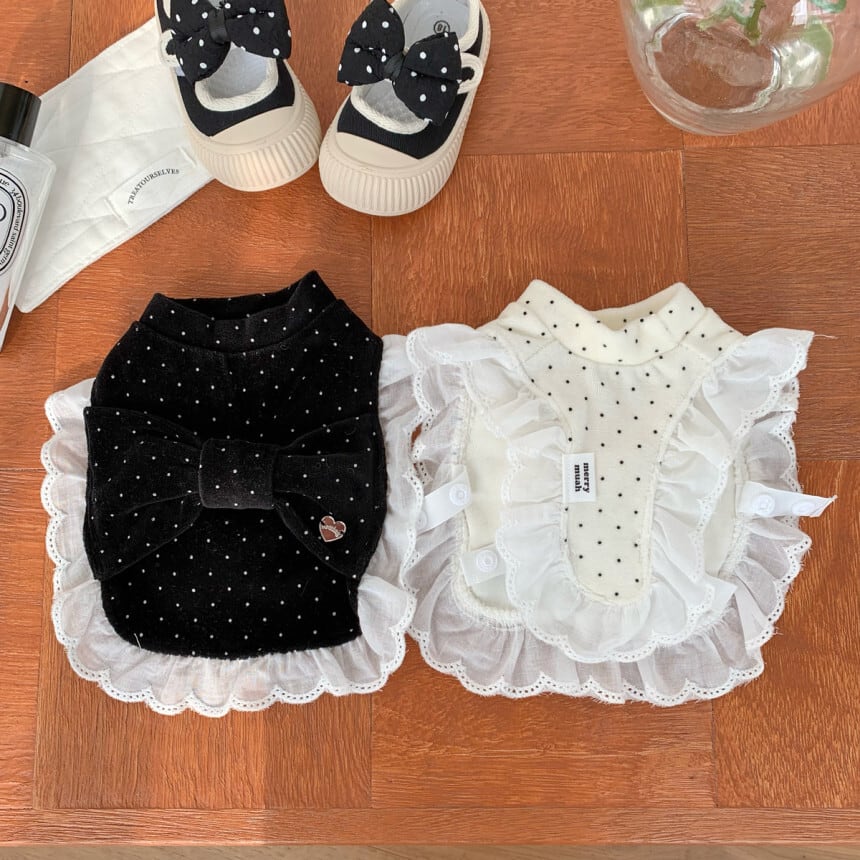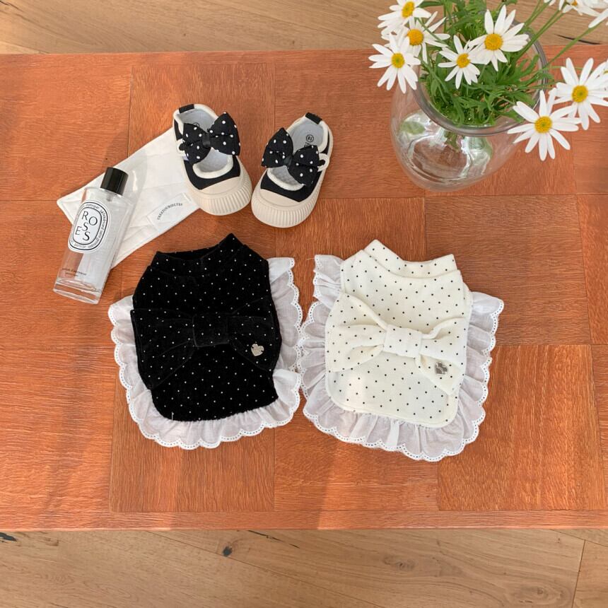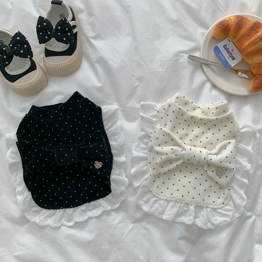 【 予約/一部即納 】bigribbon dot velours poncho 2colors ꕤ.。 韓国犬服