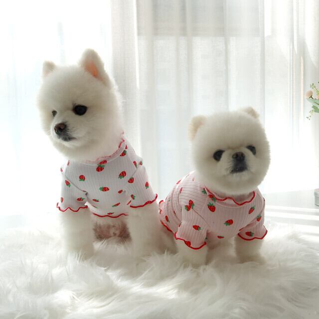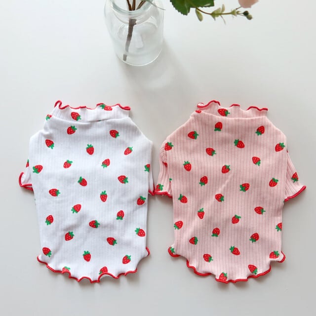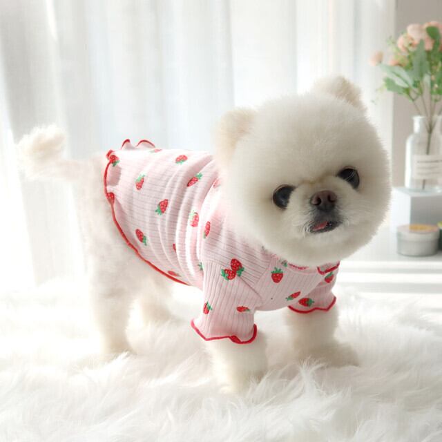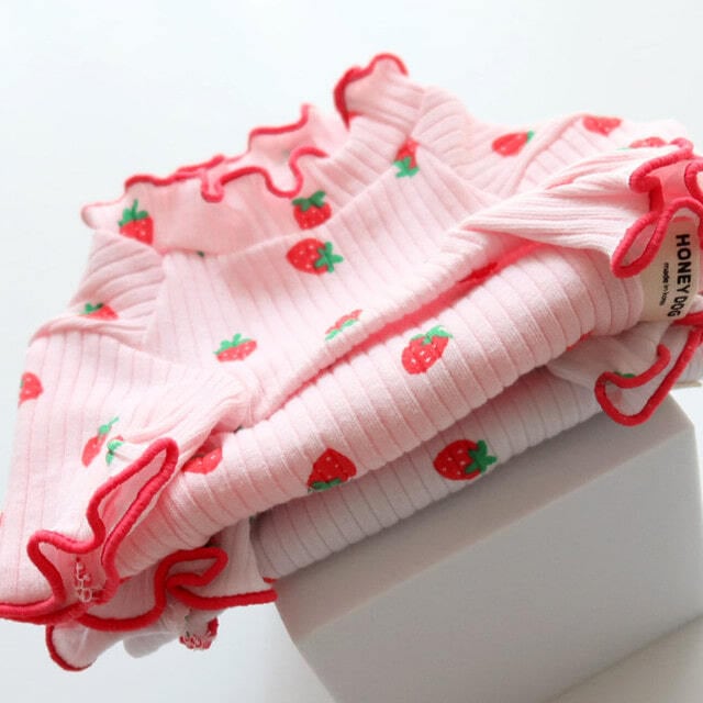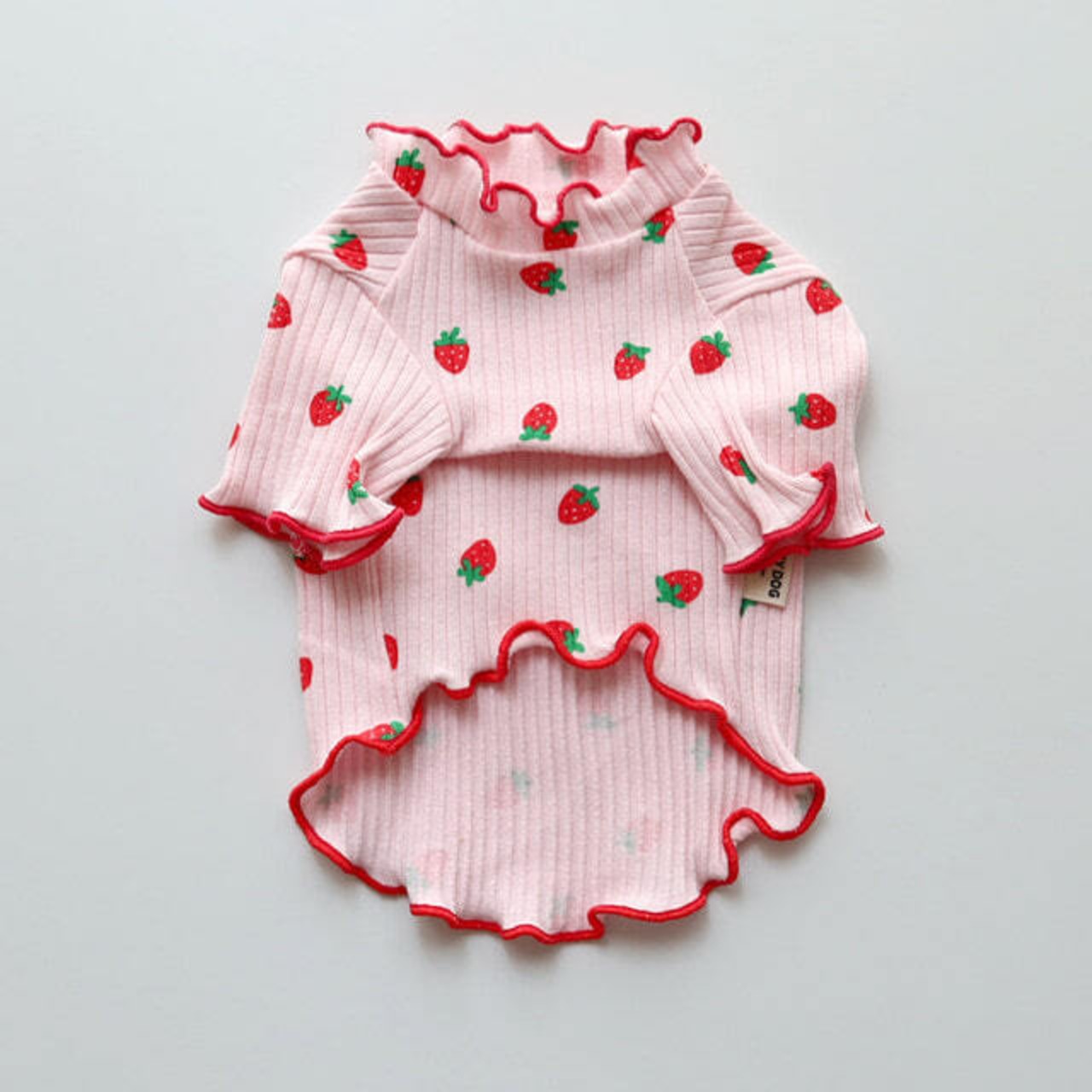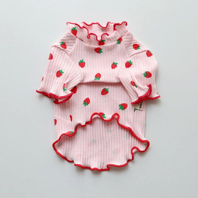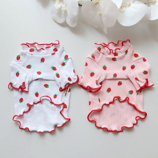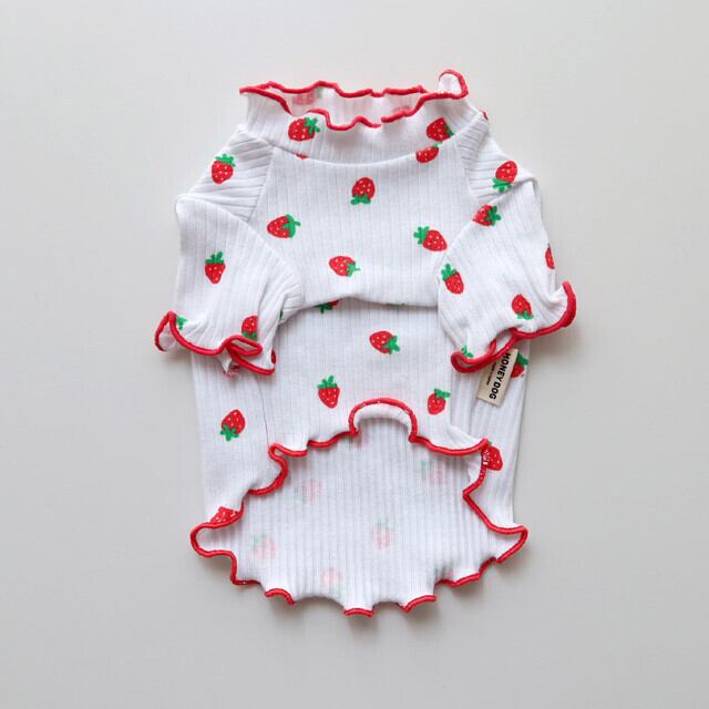 【 予約 】strawberry frill tee 2colors ꕤ.。 韓国犬服