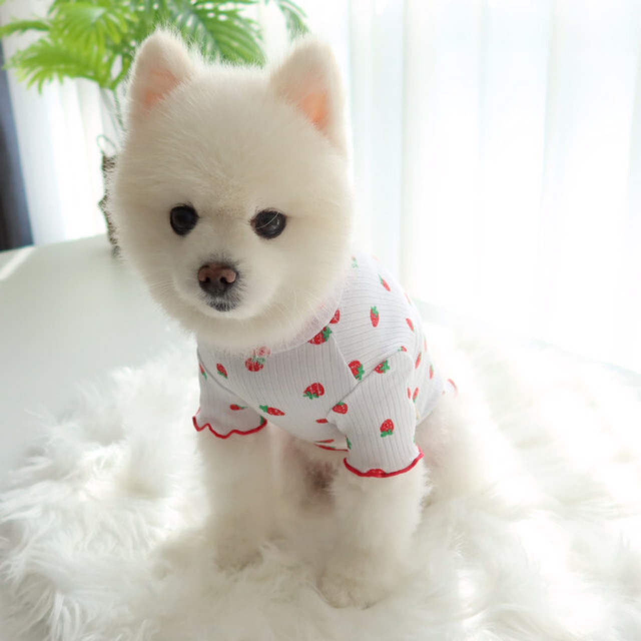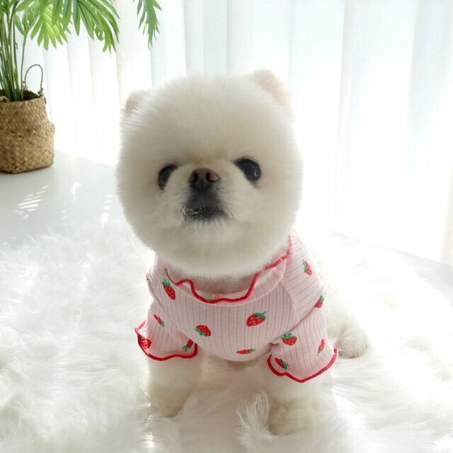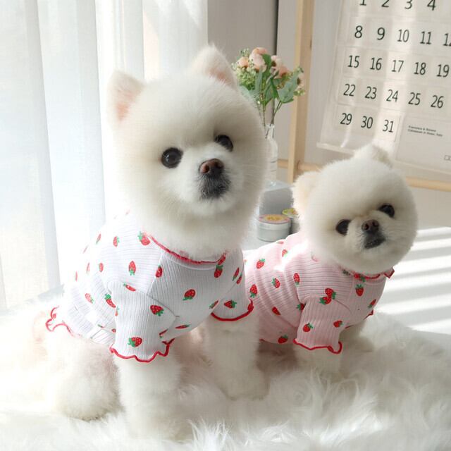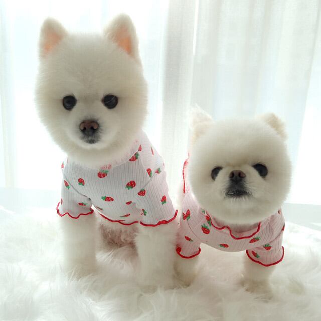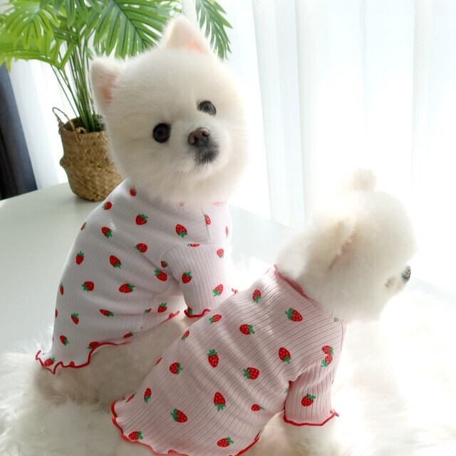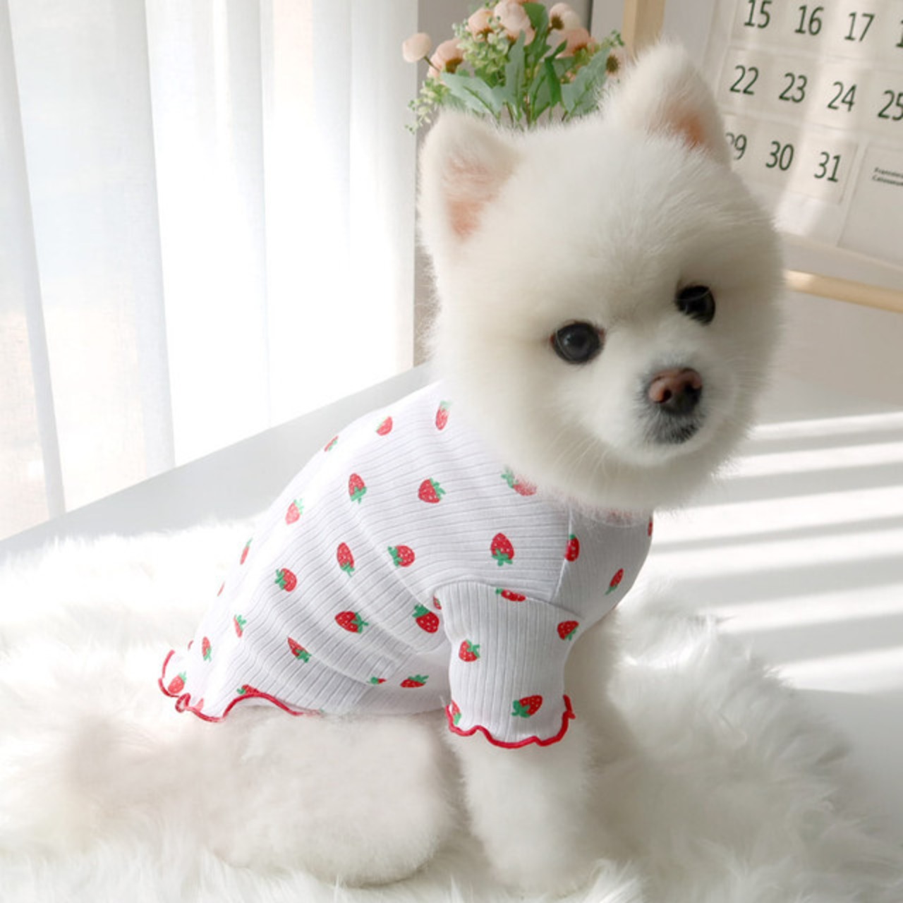 【 予約 】strawberry frill tee 2colors ꕤ.。 韓国犬服