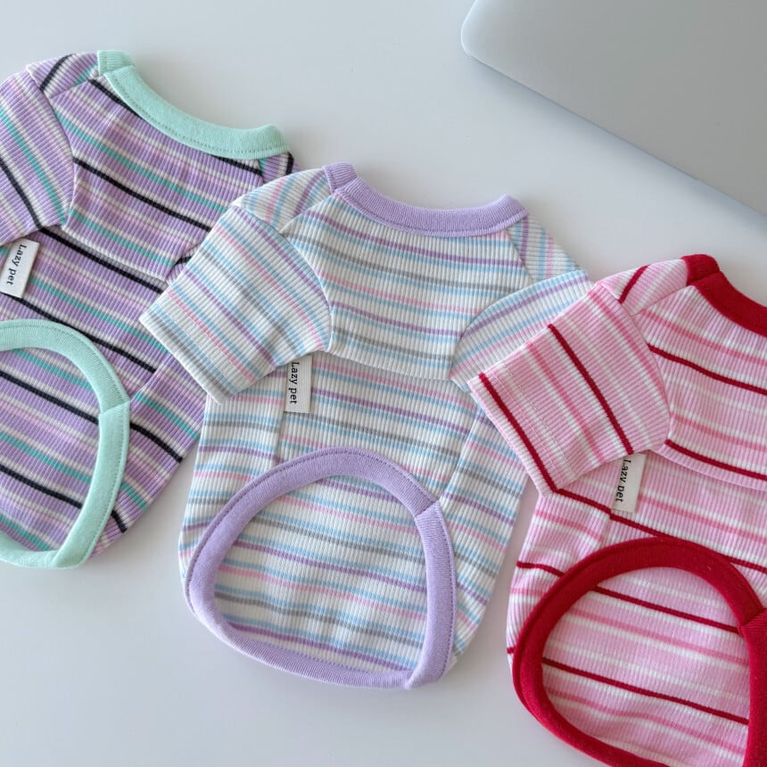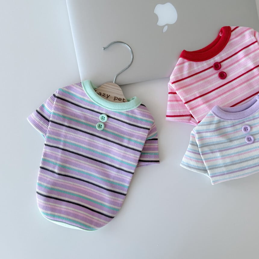 【 予約 】button stripe tee 3colors ꕤ.。 韓国犬服