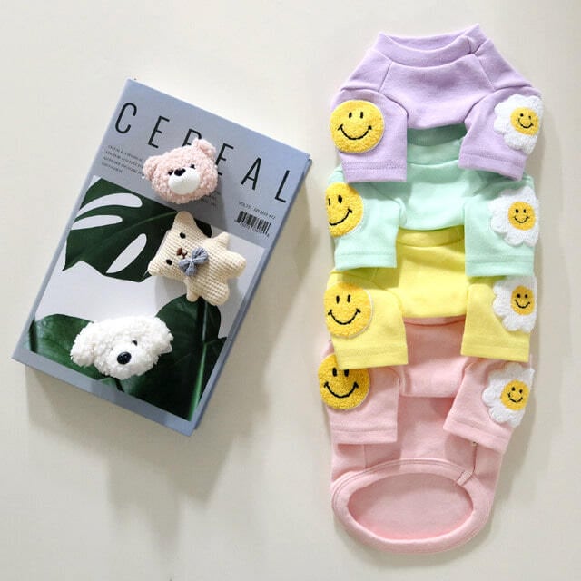 【 予約 】smile patch pop tee 4colors ꕤ.。 韓国犬服