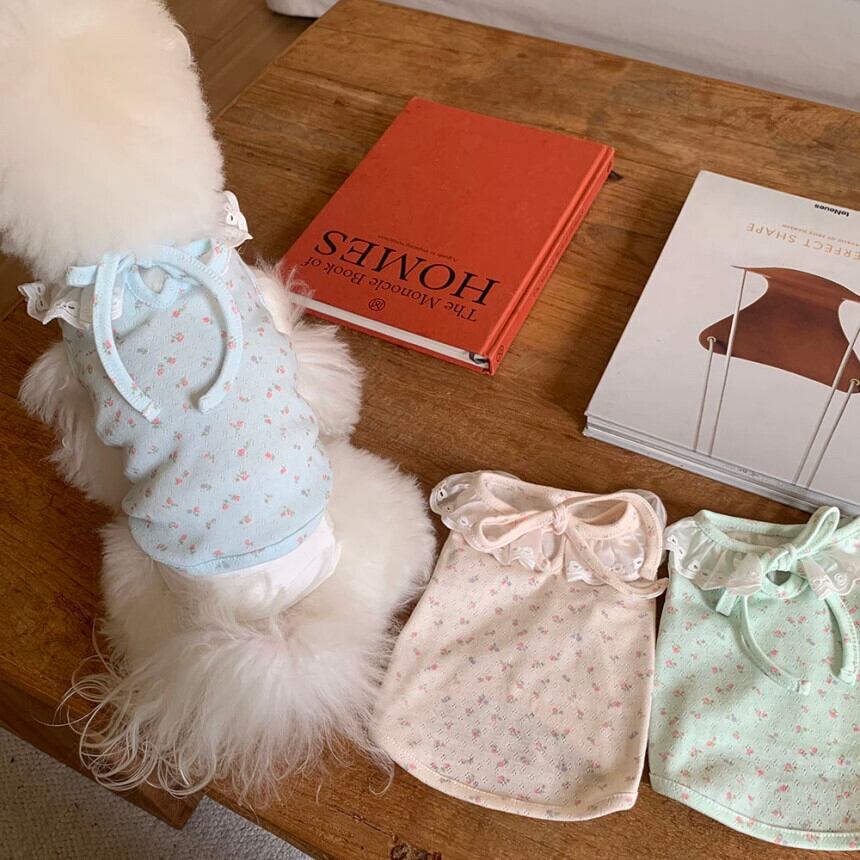 【 予約 】minigarden lace tee 3colors ꕤ.。 韓国犬服