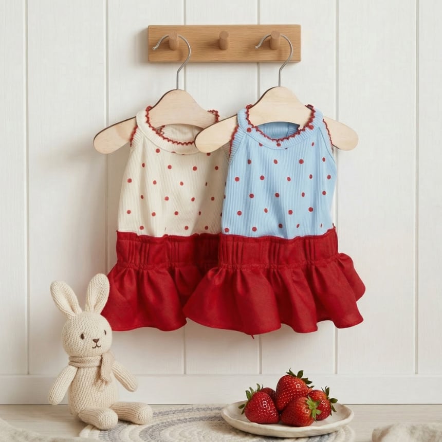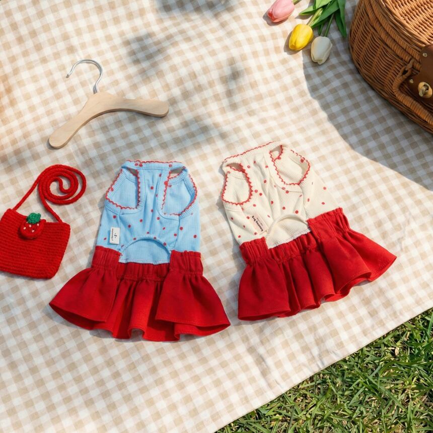 【 予約 】PomPom onepiece 2colors ꕤ.。 韓国犬服
