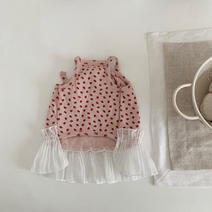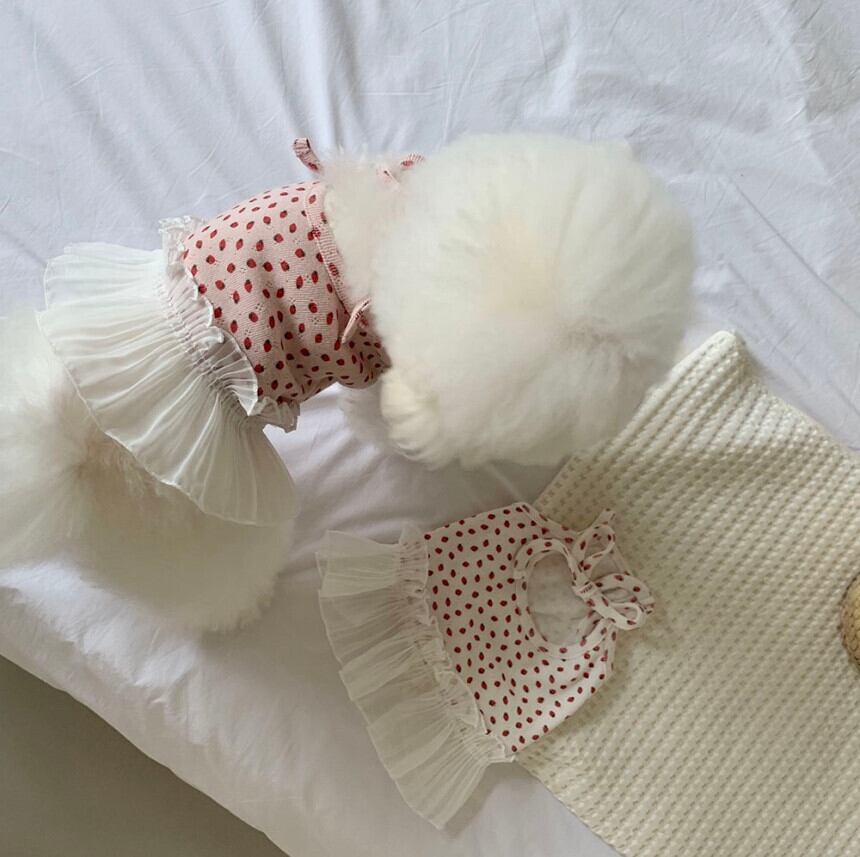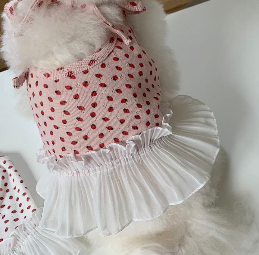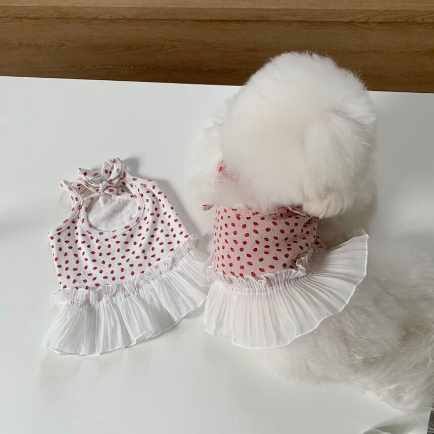 【 予約 】berry frill onepiece 2Colors ꕤ.。 韓国犬服