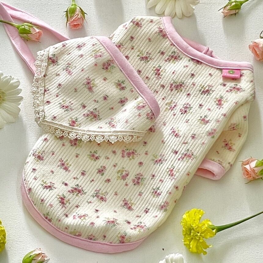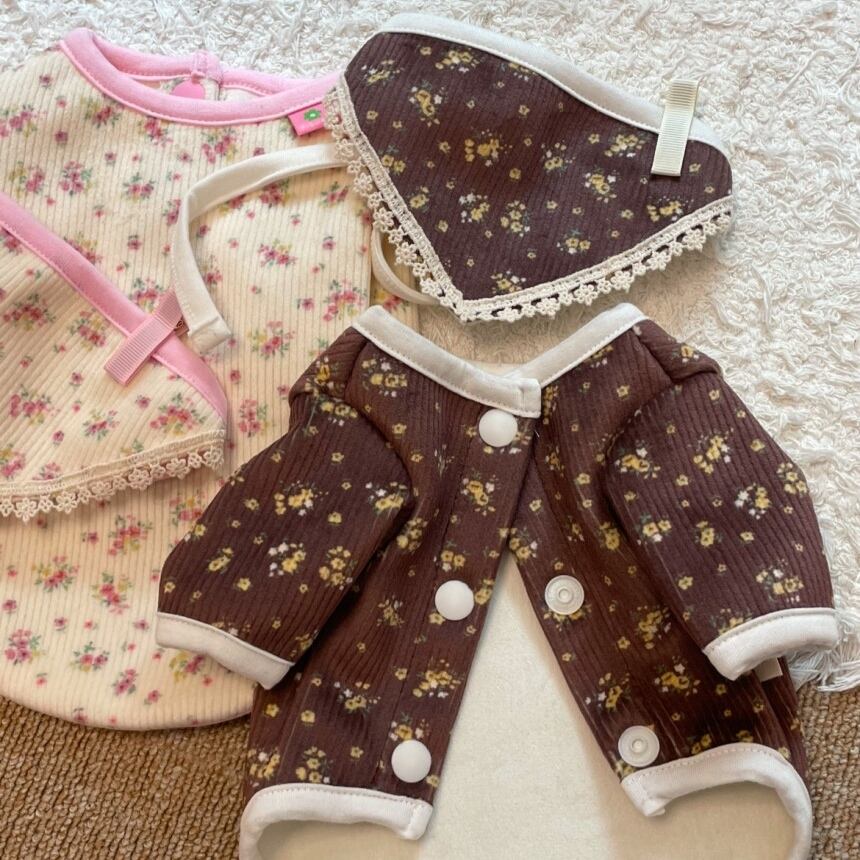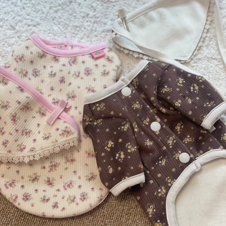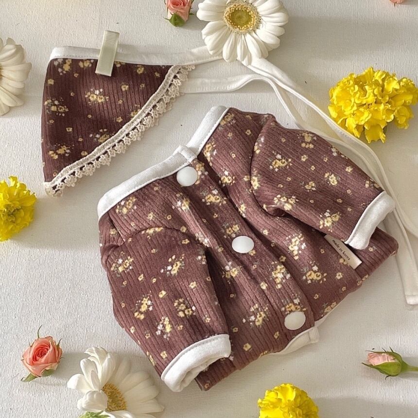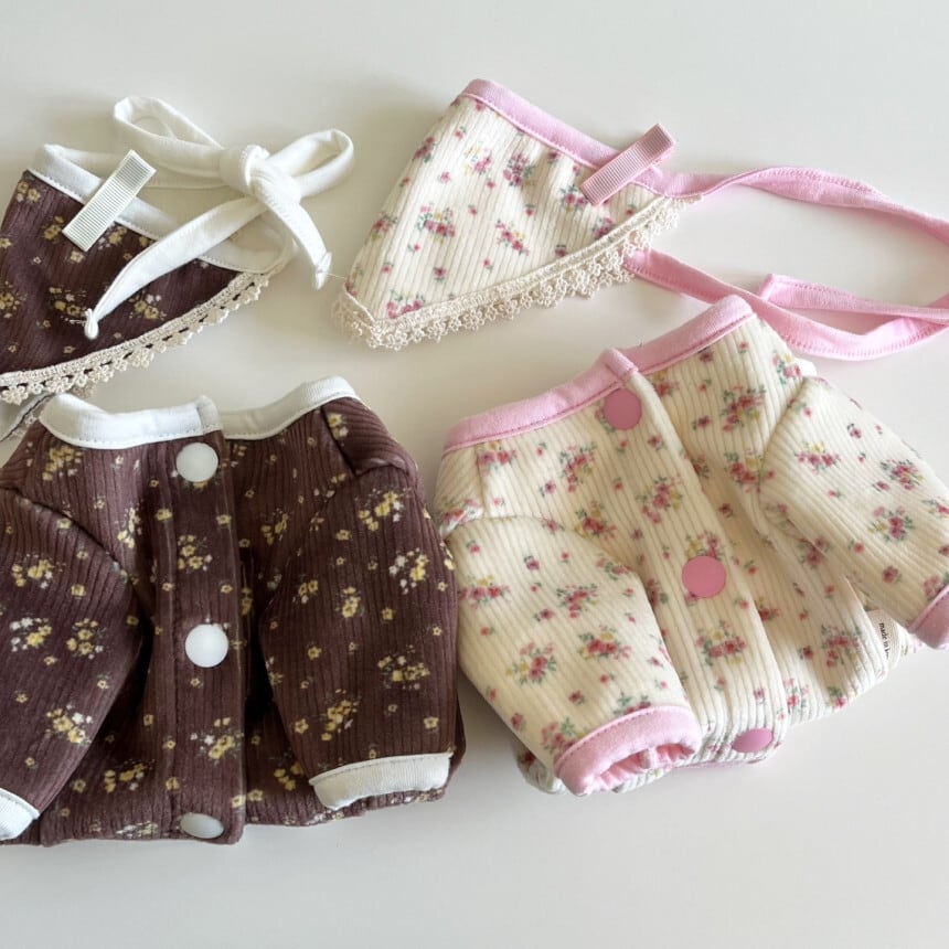 【 予約 】flower cardigan and babushka 2colors ꕤ.。 韓国犬服
